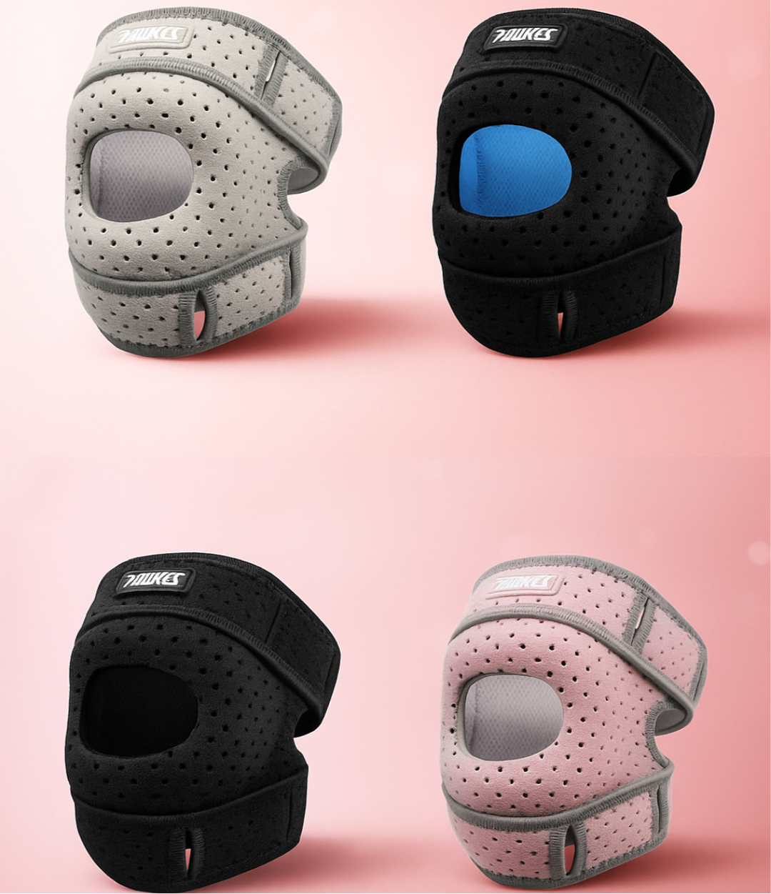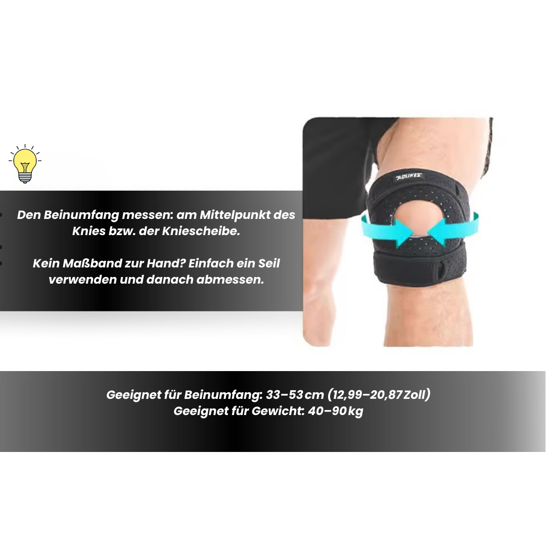 - ✔ Silikonpolster umschließen die Kniescheibe und schützen das Weichgewebe vor Druck und Verletzungen