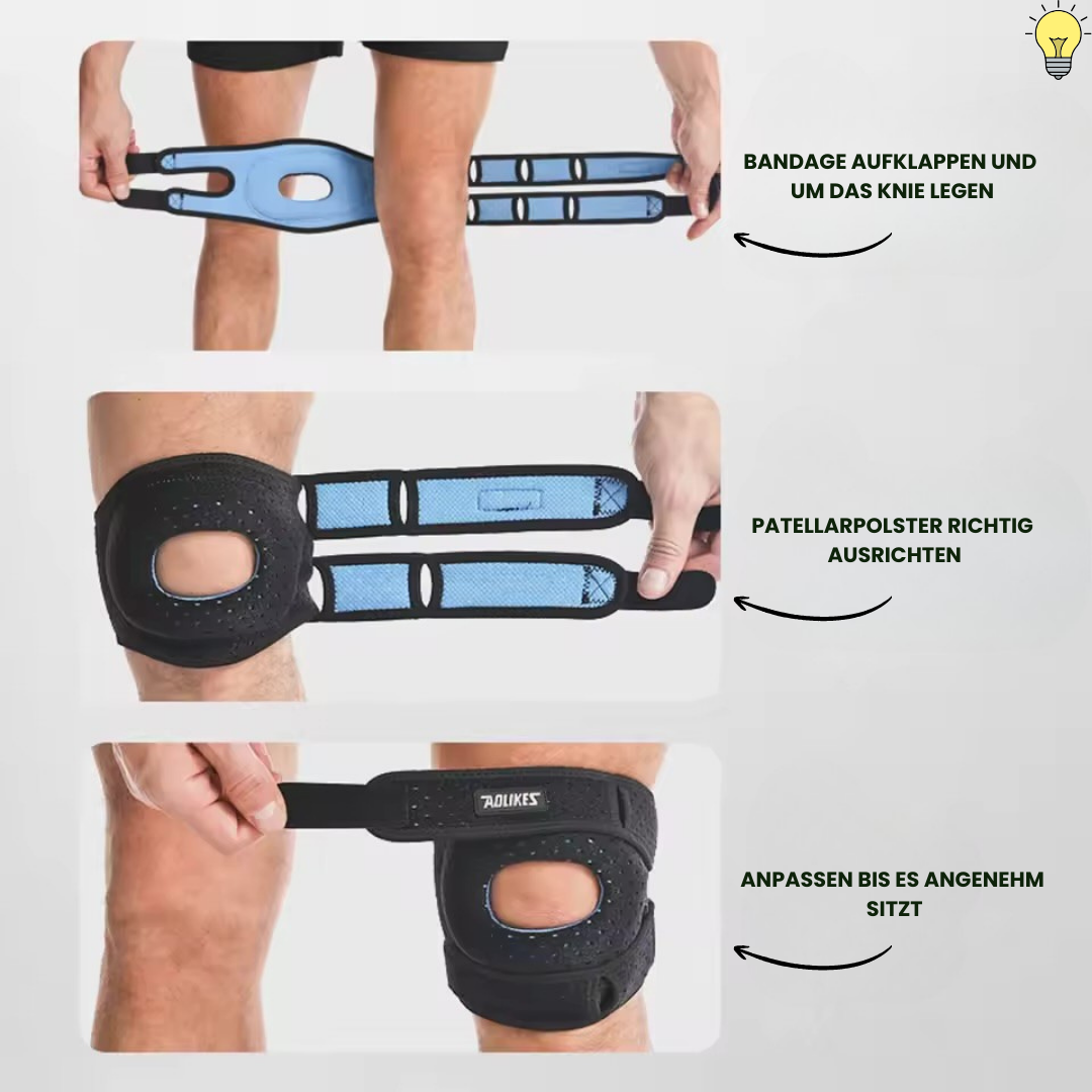 Die Polster umschließen die Kniescheibe, verteilen den Druck gleichmäßig und verhindern instabile Bewegungen, die Schmerzen verursachen.
